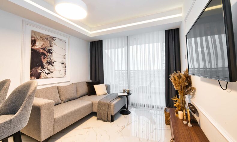 Квартира с планировкой 1+1, общей площадью 55 квадратных метров, с дополнительной террасой площадью 12 квадратных метров. Эта квартира идеально подходит для одного человека или пары, которые ценят просторные и функциональные пространства. В квартире предусмотрена одна спальня, просторная гостиная, кухонная зона и один санузел. Дополнительная терраса позволит вам наслаждаться свежим воздухом и открытым пространством, создавая уютное место для отдыха и общения. Эта квартира предлагается без мебели и техники, с стандартной отделкой от застройщика. Однако, у вас будет возможность воплотить свои дизайнерские идеи и создать интерьер по своему вкусу. Благодаря открытой планировке и просторным окнам, вы сможете воплотить любые дизайнерские решения и создать уютное и стильное пространство. Эта квартира идеально подходит как для постоянного проживания, так и в качестве инвестиции для сдачи в аренду. Стоимость 99 000 £.