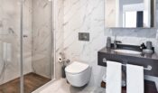 Первый жилой блок А — 27 этажей, 420 квартир и имеет бассейн и бар на последнем этаже.