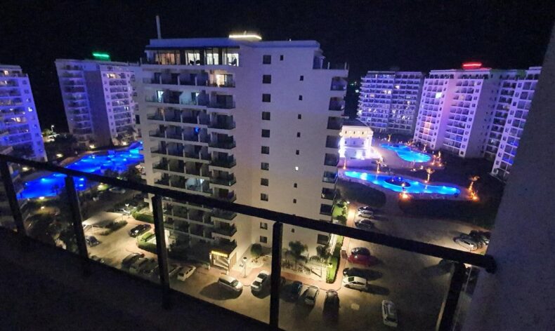 Территория комплекса площадью 17000 м², с ландшафтным дизайном, с зелеными газонами и цветочными клумбами, ансамблем цветущих деревьев и кустарников, создает ощущение оазиса, удовольствия и комфорта в любое время года. Инфраструктура комплекса хорошо продумана и предлагает обширный спектр разнообразных услуг: бассейны, детские и спортивные площадки, детский сад и детский образовательный центр, аттракционы и спортивный зал, СПА-центр и ресторан, мини-маркет, бесплатный трансфер на пляж и рынок Искеле, а также многое другое сделают ваш отдых на море радостным и комфортным.