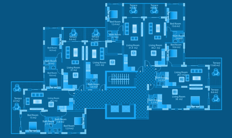 В комплексе представлены эксклюзивно спроектированные и полностью готовые к проживанию апартаменты различной планировки. Все апартаменты идут в полной чистовой отделке люкс. Цезарь 2 включает комплекс домов: Alexius, Rufus, Tiberius, Spartacus, Aurelius, Flavius, Vitus, Adreanus, Cornelius, Romulus, Remus, Italus.