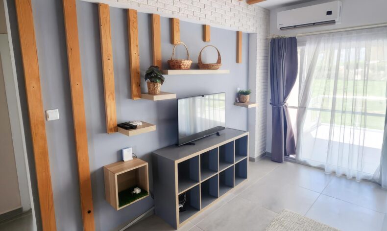 Квартира включает: кухню-гостиную, которая объединяет пространство для приготовления пищи и зоны отдыха. Здесь достаточно места для семейных обедов и встреч с друзьями.