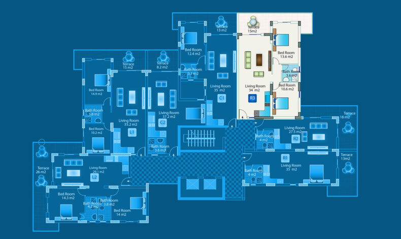 Современный высотный жилой комплекс, расположенный на берегу Северного Кипра, недалеко от города Искеле. Он всего в трех минутах ходьбы от Лонг-Бич. Искеле — это небольшой город на Северном Кипре, расположенный в восточной части острова. Он соседствует с городом Фамагуста и окружен пляжами и неповторимыми местами для отдыха.