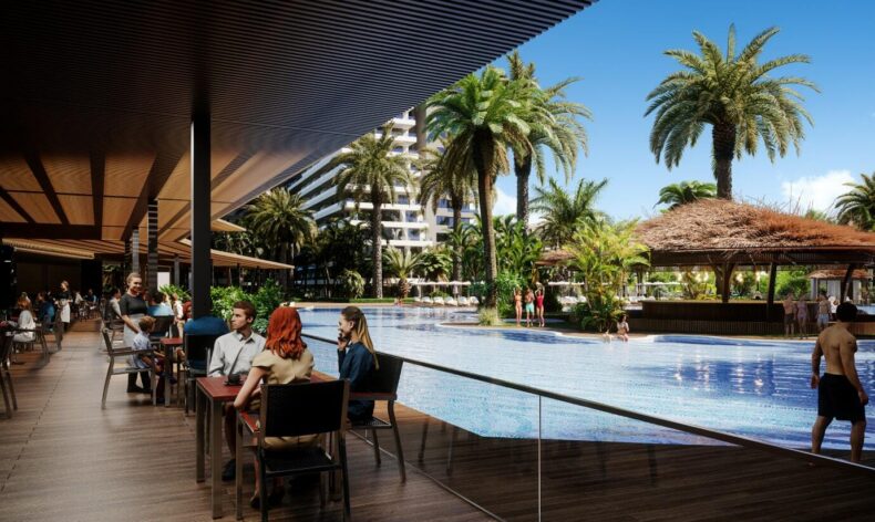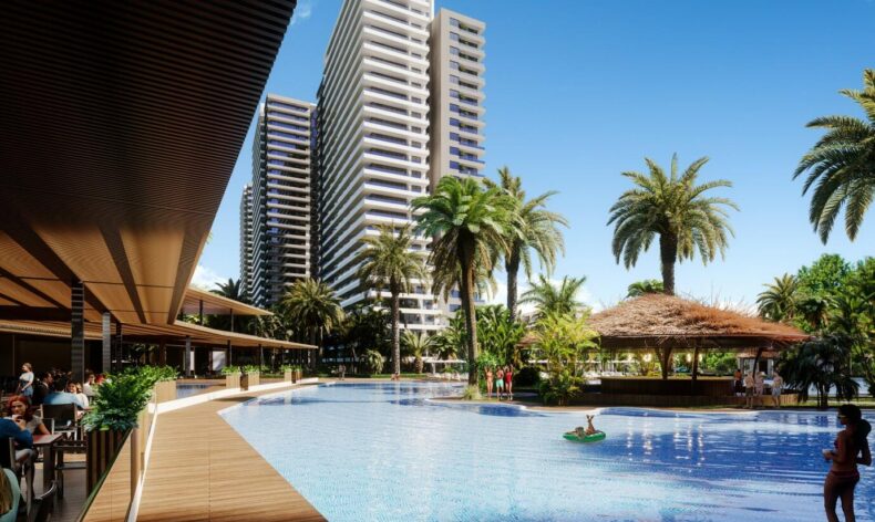 На территории комплекса расположена всевозможная инфраструктура, которая включает в себя: бассейны общей площадью более 7 000 кв.м, в том числе VIP бассейн на крыше небоскреба, аквапарк с 8-ю горками для взрослых и детей, рестораны и бары, магазины, площадки для мини-гольфа, кинотеатр под открытым небом, спортивные площадки, игровые площадки для детей, детские клубы, ночной клуб и казино. На территории комплекса есть охраняемая парковка, оборудованы удобные дорожки для пеших и велосипедных прогулок. Предусмотрено все для интересного времяпровождения, как для взрослых, так и для детей. Комплекс находится в нескольких шагах от побережья, он располагает собственным благоустроенным пляжем и пляжным клубом.