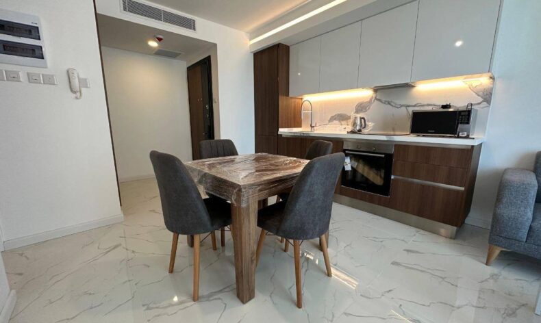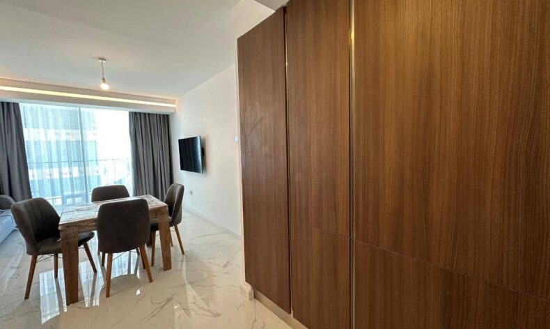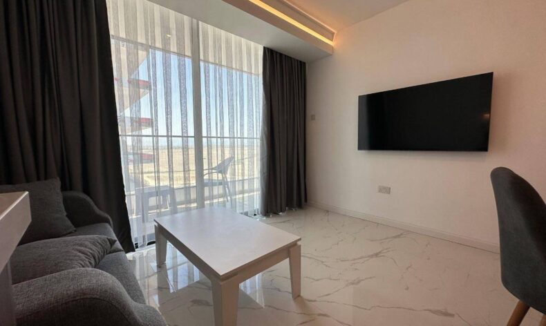 Квартира с планировкой 1+1 располагается на 16 этаже 27-этажного дома (Блок A) представляет собой уютное и функциональное жилье, идеально подходящее для одного человека или пары. В центре квартиры находится кухня-гостиная, которая служит главным пространством для приготовления пищи, обедов и отдыха. Одна спальня предоставляет уединенное пространство для отдыха и сна, а санузел удовлетворяет потребности в удобствах. Налоги и трафо оплачены. Стоимость 147 000 £.