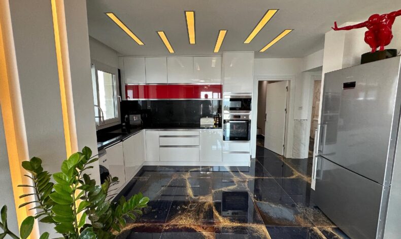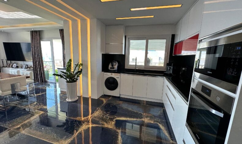 На продажу выставлен роскошный пентхаус в масштабном жилом комплексе Park Residence. Ключи на руках, оперативный показ! Пентхаус жилой площадью 90 м² с большой панорамной террасой 100 м², расположенный в Блоке F. Пентхаус с ремонтом, укомплектована встроенными шкафами в каждой комнате, встроенной кухней и техникой из пяти бытовых приборов (стиральная машинка, микроволновка, холодильник, духовой шкаф и духовая плита). Можно уже заезжать и жить! Квартира с прекрасным видом на Средиземное море, горы и инфраструктуру.