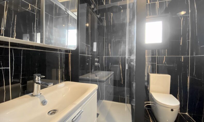 Выход на балкон с видом на Средиземное море, второй балкон с видом на бассейн. В квартире никто не проживал. Мебель и техника новые. Плита газовая и электрическая. Дорогостоящее оборудование от плесени во всех комнатах, ТВ с меню на русском языке, интернет, свет, вода подключены.