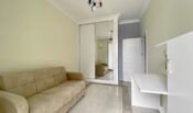 Выход на балкон с видом на Средиземное море, второй балкон с видом на бассейн. В квартире никто не проживал. Мебель и техника новые. Плита газовая и электрическая. Дорогостоящее оборудование от плесени во всех комнатах, ТВ с меню на русском языке, интернет, свет, вода подключены.
