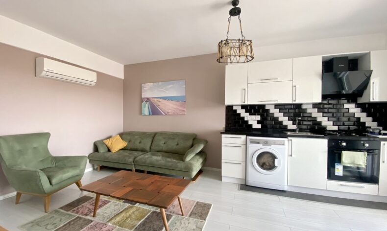 В продаже апартаменты 1+1 с прекрасным панорамным видом на море и зеленое поле в жилом комплексе Эдельвейс, в непосредственной близости от пляжей Лонг Бич в районе Искеле.