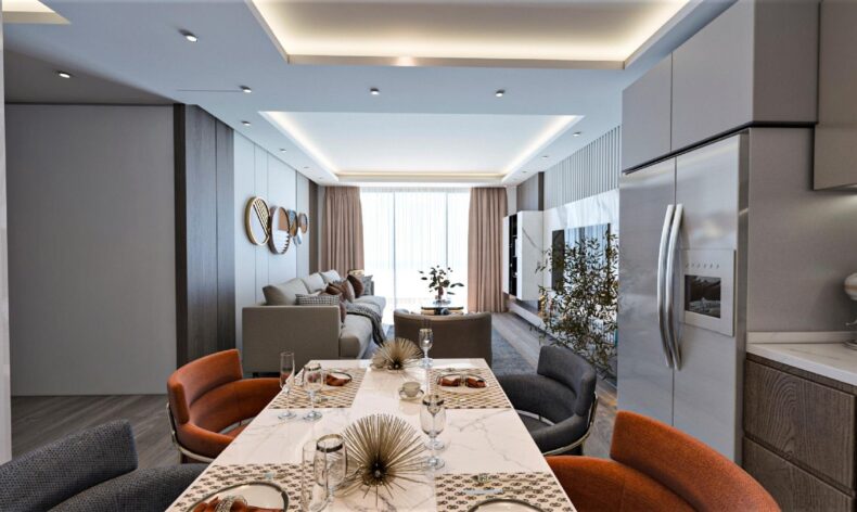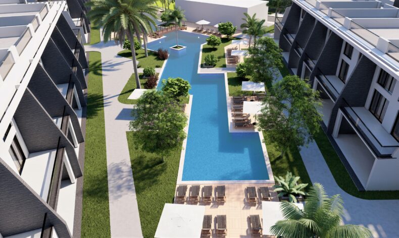 На территории будет разносторонняя внутренняя инфраструктура: спортивный зал, сауна, закрытый и открытые бассейны, развлечения для детей, шлагбаум и видеокамеры. Комплекс находится в доступности от современной инфраструктуры, лучшим образовательным центрам и золотыми песчаными пляжам.