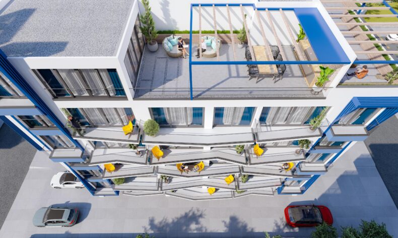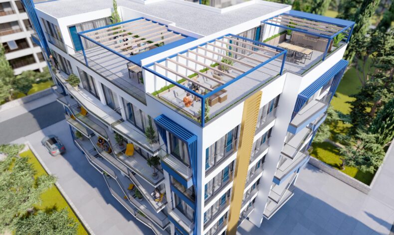 Проект, общей площадью 900 м², состоит из 6 этажей и 31 единицы различных типов квартир, включая 1+1 и 2+1 (доступны апартаменты с видом на море). Все апартаменты идут в полной чистовой отделке люкс: встроенные шкафы и кухонный гарнитур, высококачественная сантехника, теплоизоляция на потолке, устойчивая к жаре и холоду, окна с теплоизоляцией из ПВХ, инфраструктура кондиционирования воздуха во всех квартирах, спутниковое телевидение. Комплекс прекрасно подходит для постоянного проживания. В доме будет предусмотрено: охрана-пожарная сигнализация, парковка, лифт, камеры видеонаблюдения, современный дизайн квартир. На крыше дома расположены открытые террасы для общего пользования. На нулевом уровне находится крытая парковка для резидентов и гостей комплекса.