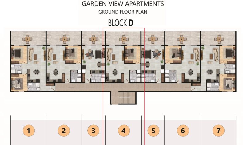 Квартира 1+1 в корпусе D4 общей площадью 101 м² с видом на бассейн!