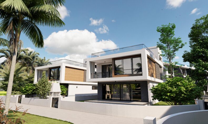 Вилла 3+1 общей площадью 220 м², жилая площадь 185 м², балкон 23 м², терраса 14 м², терраса на крыше 88 м², 3 санузла. Каждая вилла оборудована просторным балконом с видом на бассейн, собственным участком земли, полностью готовым санузлом, встроенным камином, прачечной. Предусмотрены и солнечные панели для подогрева воды. Есть возможность заказать дизайн-проект своих апартаментов или виллы.