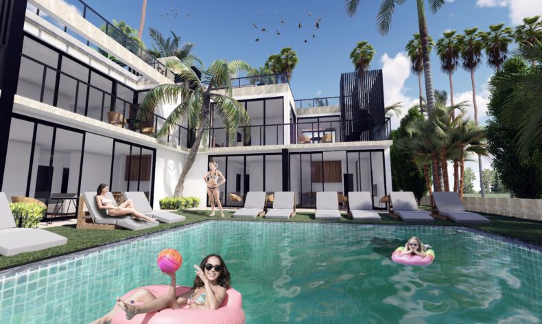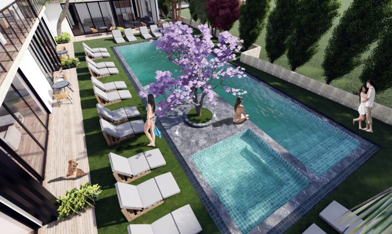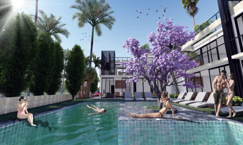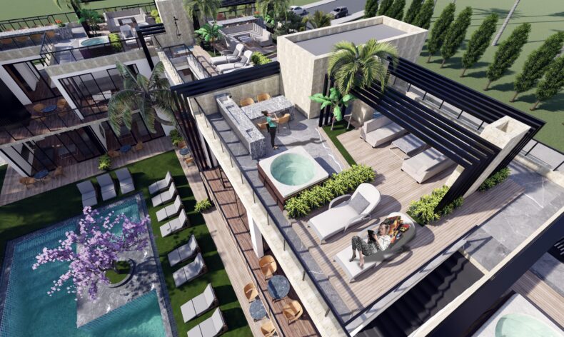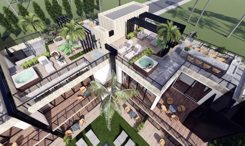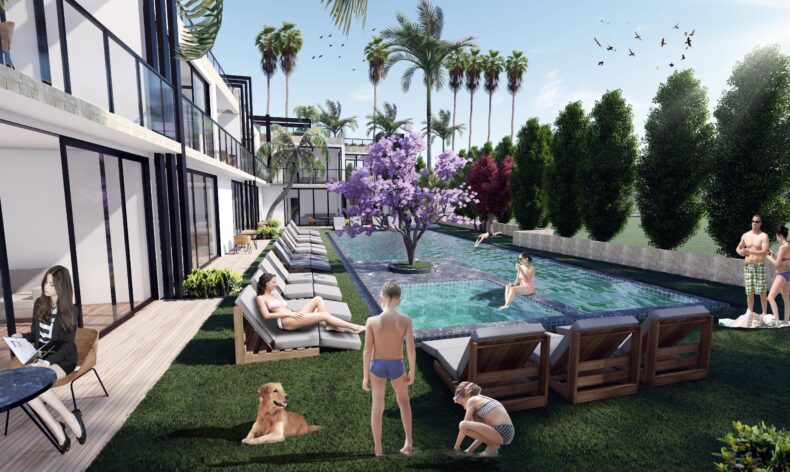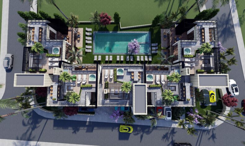 Проект включает в себя 12 апартаментов разной планировки (1+1, 2+1, 3+1) с выходом на крышу и собственным садом. В строительстве комплекса вилл использовались отделочные материалы класса Люкс. Все виллы оснащены солнечной системой нагрева воды, центральной инфраструктурой кондиционирования воздуха и система видеонаблюдения. На охраняемой территории комплекса есть парковка, большой бассейн, зоны для прогулок, отдыха и спорта.