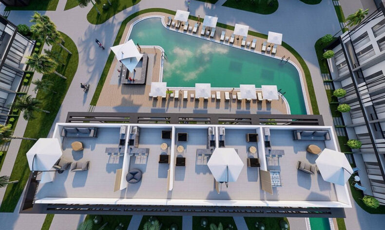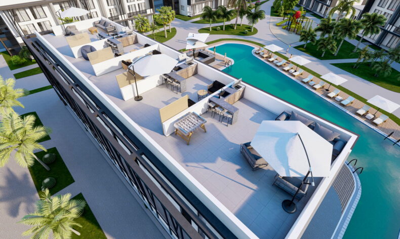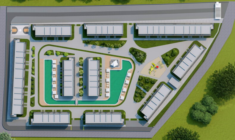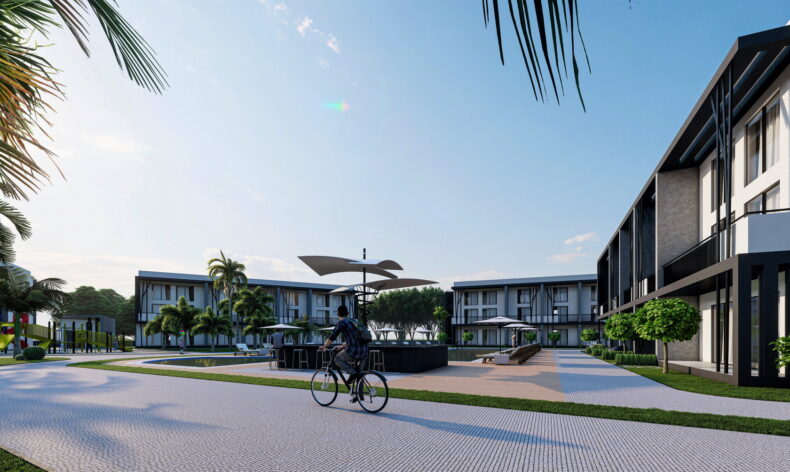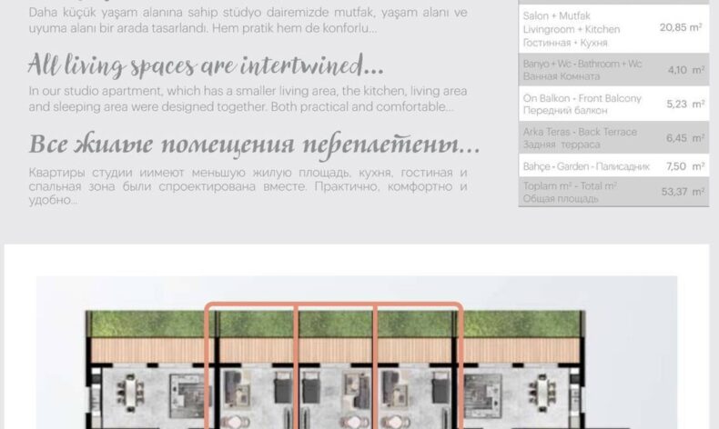 Проект включает в себя множество жилых помещений различных планировок: от студии до лофтов с одной или двумя спальнями. Квартиры на верхних этажах могут располагать просторными террасами на крыше. Территория комплекса очень зеленая и будет засажена фруктовыми деревьями. Инфраструктура комплекса включает в себя: открытый бассейн; закрытый бассейн 5х10 м2; сауну; спорт зал; pool бар; детскую площадку.
