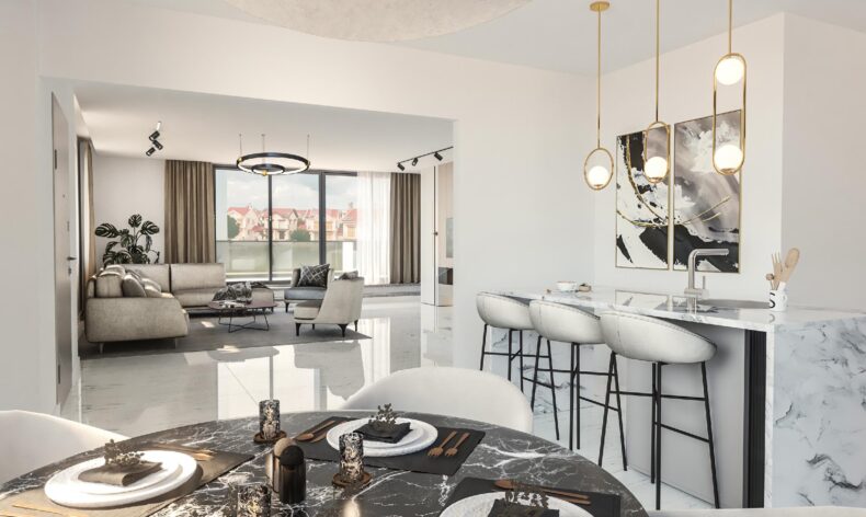 В проекте представлено 8 шикарных современных вилл 3+1 просторной планировки площадью 330 м². Проект был тщательно разработан с использованием материалов самого высокого качества. Виллы включают в себя: 3 спальни, 1 кухню, 1 гостиную, 3 ванные комнаты, 2 туалета и подвал 110 м² (жилая зона / комната для хобби), туалет+ванную в подвале (по желанию), раздельные гостиную и кухню, камин, балкон и террасу на крыше площадью 105 м² с видом на море и зоной для барбекю.