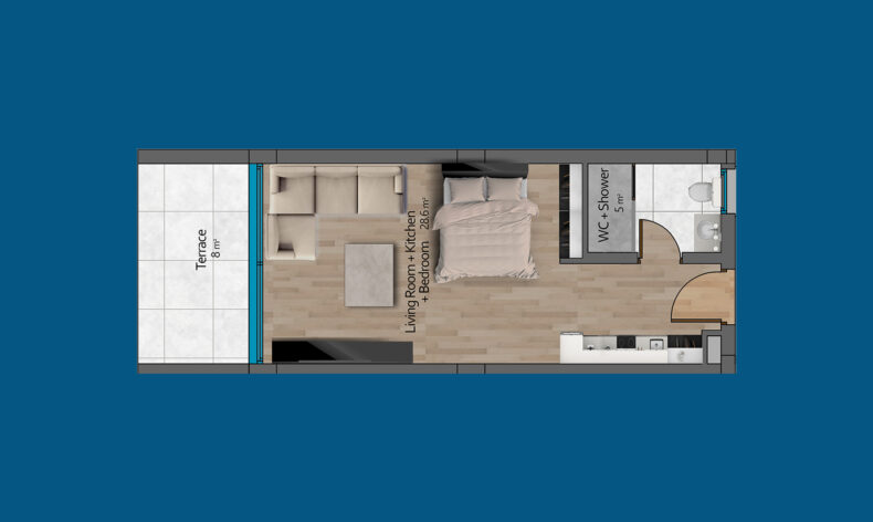 Уникальная студия-пентхаус с потрясающим видом на море. Общая площадь этого объекта составляет 35 квадратных метров, к которой добавляется просторный балкон площадью 8 квадратных метров и великолепная терраса на крыше площадью 43 квадратных метра. Этот пентхаус создан для тех, кто ищет исключительный комфорт и роскошь. Просторная гостиная с панорамными окнами позволяет наслаждаться захватывающим видом на море прямо из вашего уютного уголка. Балкон прилегает к гостиной, предоставляя возможность наслаждаться свежим воздухом и красотой окружающей природы прямо у вас дома. Одна ванная комната оборудована всем необходимым для вашего удобства. Крыша специально спроектирована для того, чтобы вы могли насладиться прекрасными закатами и звездным небом. Здесь вы можете устроить барбекю, устроить романтический ужин или просто насладиться тишиной и уединением в окружении великолепного пейзажа. Этот пентхаус предлагается без мебели и техники, что дает вам возможность воплотить свои собственные дизайнерские фантазии и создать интерьер вашей мечты. Это прекрасное жилье для тех, кто ищет роскошь и уют в сердце природы с видом на бескрайнее море. Стоимость- 121 000 £.