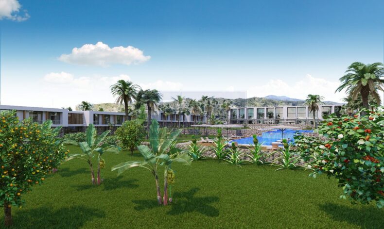 Уникальный курорт с концепцией экологического оздоровления, расположенный всего в 100 метрах от моря, на фоне горного хребта Кирения. Проект предлагает фантастический панорамный вид на море, не говоря уже о великолепных видах на горы. На этом месте расположены первые на острове аквапонические и гидропонные сады, а также первые и единственные биологические бассейны на острове.
