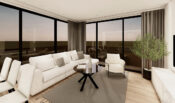 Первые три этажа в проекте занимают 36 офисных помещений премиум-класса, каждое из которых имеет шесть частных парковочных мест. На верхних этажах представлены 24 роскошные квартиры планировками 2+1 и 3+1. Все апартаменты оформлены в современном стиле, идут в чистовой отделке с гостиной и столовой открытой планировки. Апартаменты наполнены естественным светом благодаря окнам от пола до потолка. Открывается роскошная панорама с захватывающим видом на живописный город Кириния. В жилом комплексе будет предусмотрено: ландшафтный сад, парковка, лифт, камеры видеонаблюдения, современный дизайн квартир.
