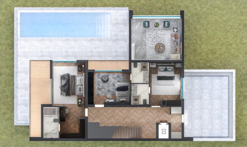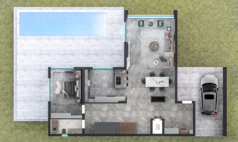 Площадь участка с частным бассейном: от 594 — 810 м2, начиная от