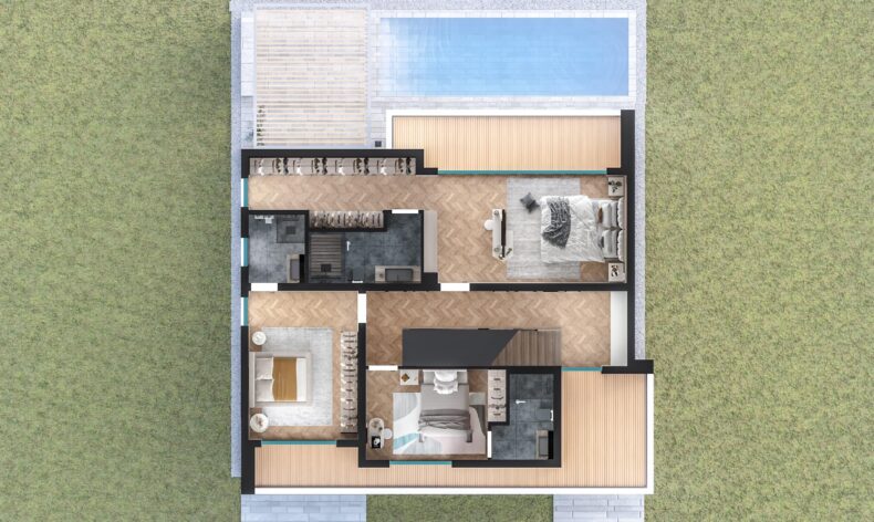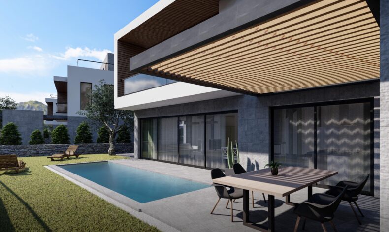 Комплекс состоит из 3 вилл Almond, 9 вилл Olive и 2 вилл Palm. Уникальность проекта заключается в том, что для каждого типа вилл в комплексе предусмотрены: частные бассейны для каждой виллы, тщательно продуманные внутренние помещения, на каждой вилле есть терраса на крыше, собственный бар на террасе, панорама моря и гор, тщательно продуманные интерьеры, просторная гардеробная комната и система отопления-охлаждения VRF. Вас ждут изысканно оформленные внутренние помещения и уникальные виды на горы и море.