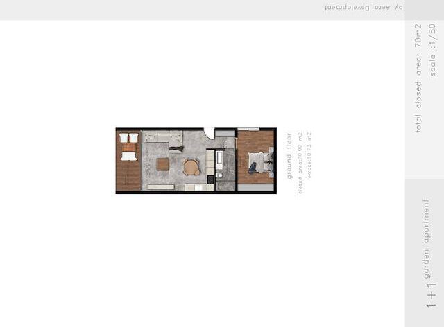 При строительстве жилого комплекса использовались высококачественные материалы и сейсмостойкие конструкции. Апартаменты с одной спальней, двумя ванными комнатами, встроенными шкафами в спальнях, панорамными окнами и оборудованной кухней. В комплексе предусмотрен бассейн и сад с ландшафтным дизайном.
