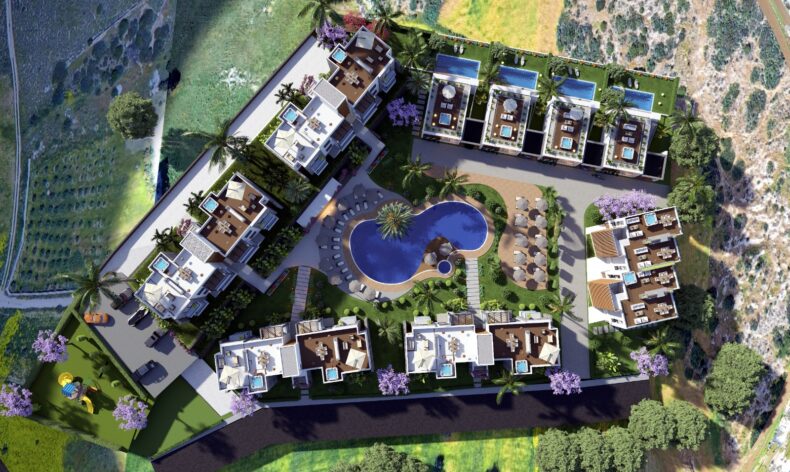 В комплексе будет своя обширная инфраструктура, которая включает в себя: большой открытый бассейн, ботанический сад, прогулочные зоны, тренажерный зал, детскую площадку и частные парковочные места. Комплекс находится в 10 минутах езды до профессионального поля для гольфа Korineum Club и в 25 минутах езды до туристического города Кирения с его уютной гаванью, ресторанами, магазинами и достопримечательностями.