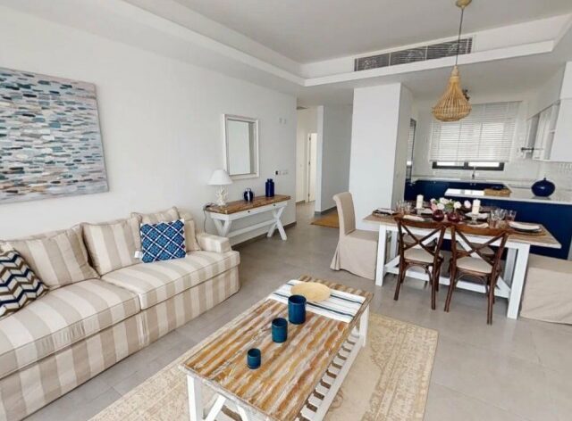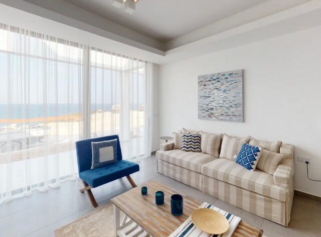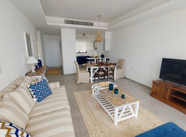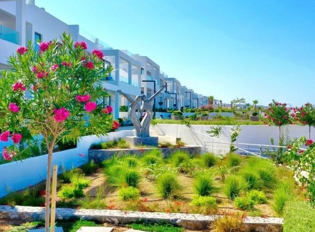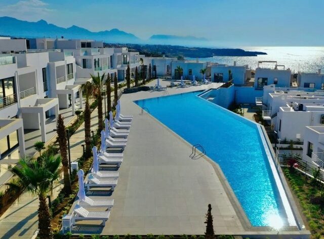 В роскошном комплексе есть пляж, общий бассейн с видом на море, бассейн с морской водой, ресторан, бар, теннисный корт, очистные сооружения. Кроме того, в комплексе действует бесплатный трансфер до различных объектов и магазина. Спа-центр, сауна, фитнес-центр и другие социальные зоны также доступны для жителей этого комплекса. В одном км езды от комплекса находится Гольф-курорт Korineum с его теннисным клубом и ухоженным пляжем. Проект находится в 30 минут езды до города Кирения и 45 минут езды от аэропорта Эрджан.