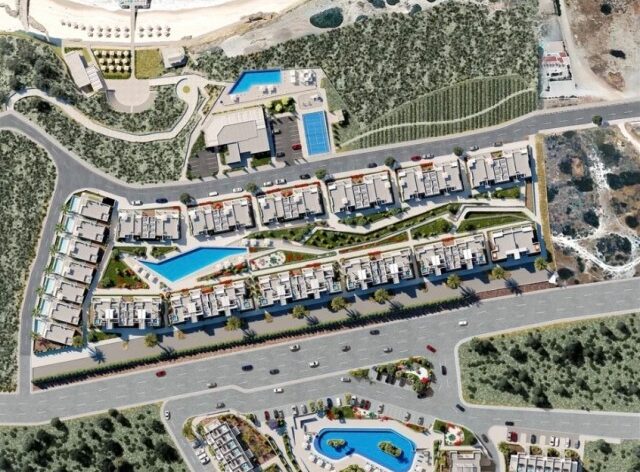 Комплекс расположен недалеко от пляжа Коув и в 1 км от курорта Korineum Golf & Beach. С участка открывается захватывающий вид на море и горы. Инфраструктура Эсентепе привлекает, в первую очередь тех, кому нужен комфортный и относительно уединенный отдых. Эсентепе это быстрорастущий и развивающийся регион острова, где недвижимость со временем будет приобретать дополнительную ценность.