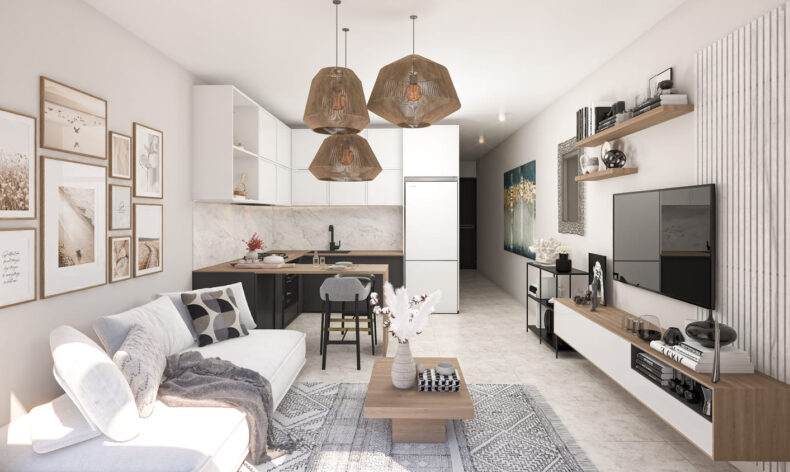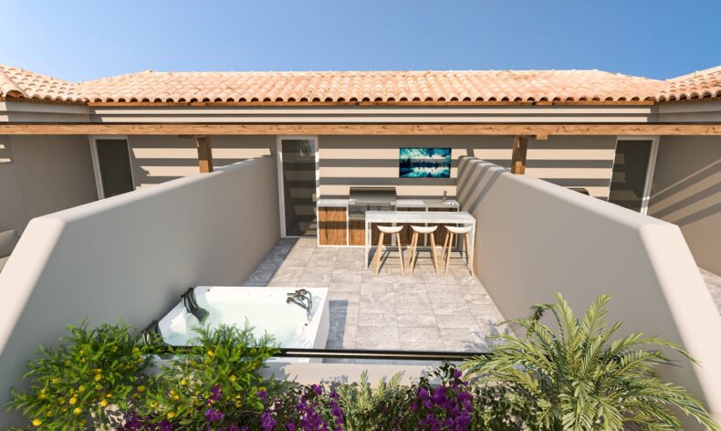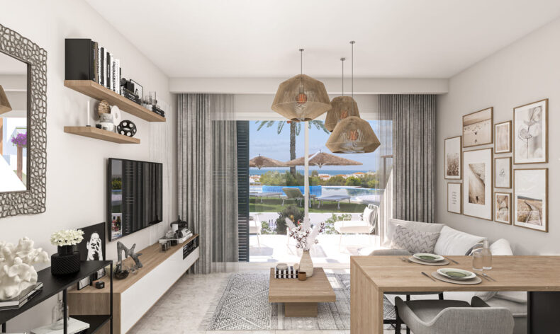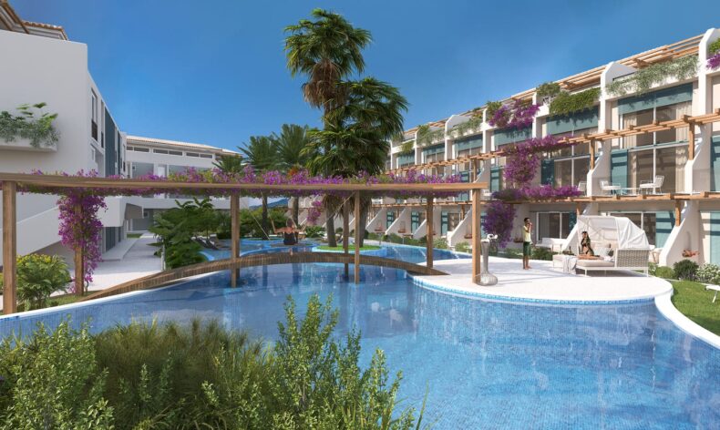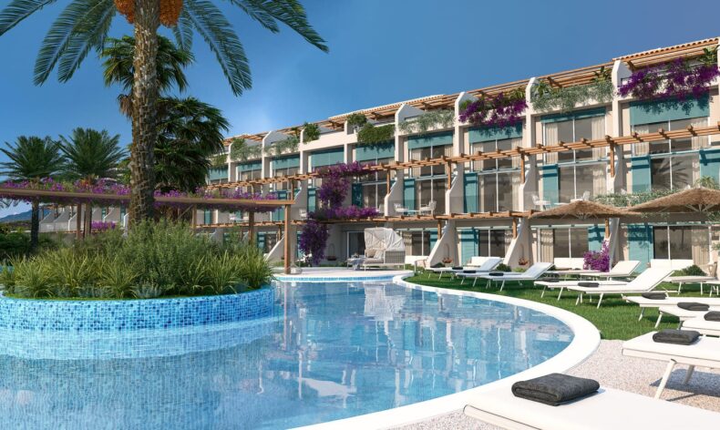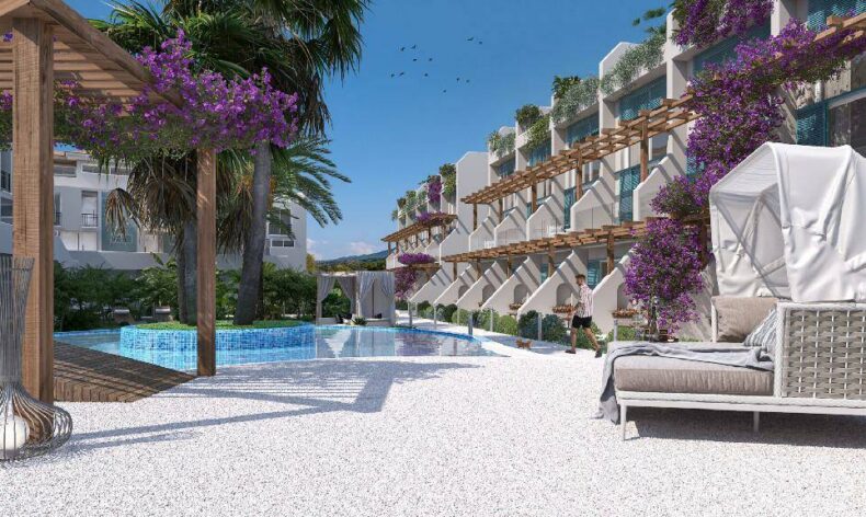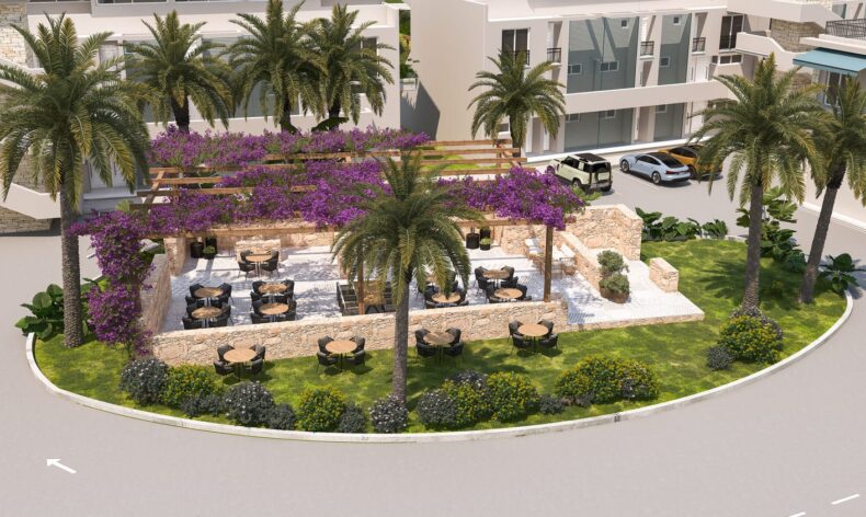 Комплекс построен из двухэтажных блоков, в которых находятся как однокомнатные, так и двухкомнатные апартаменты. Владельцы апартаментов на первом этаже могут наслаждаться собственной террасой у дома, а жители второго этажа получат привилегию пользования своими апартаментами как пентхаусами с личной террасой на крыше. Все апартаменты сдаются с чистовой отделкой, готовыми санузлами и встроенной кухней. Из окон апартаментов открываются невероятные виды на Средиземное море!
