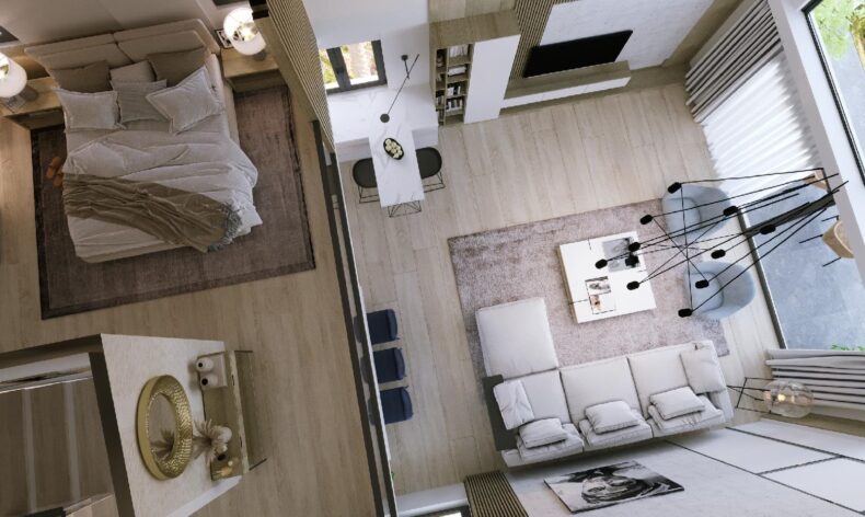 Проект представляет собой современный комплекс смежных вилл с индивидуальными бассейнами и двухэтажных корпусов с разными апартаментами типа студий, 1+1, 2+1 с индивидуальными террасами на крышах и бассейнами на территории комплекса. Все апартаменты сдаются с качественной чистовой отделкой, оборудованными кухней и ванной комнатой, встроенными шкафами в спальнях. Так же есть дизайн пакеты включающие полную меблировку. Отсюда открываются великолепные виды на море и горы.