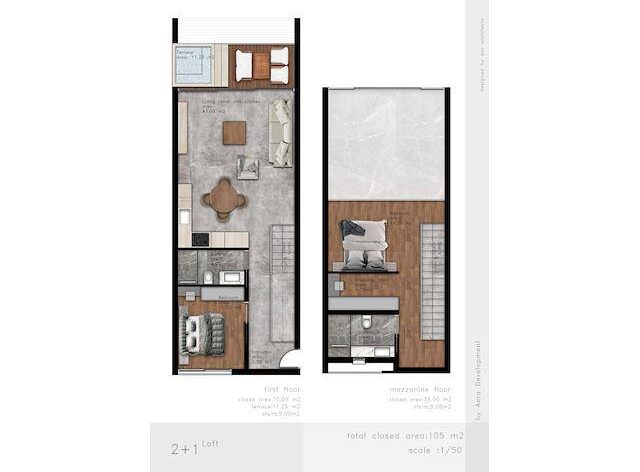 При строительстве жилого комплекса использовались высококачественные материалы и сейсмостойкие конструкции. Роскошный пентхаус с двумя спальнями, тремя ванными комнатами, встроенными шкафами в спальнях, панорамными окнами и оборудованной кухней. В пентхаусе предусмотрен бассейн площадью 1.9 x 1.9 и сад с ландшафтным дизайном.
