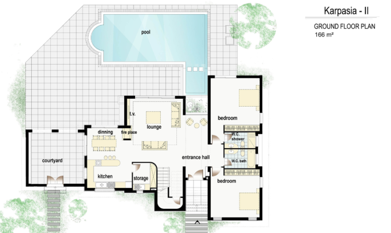 Комплекс идеально расположен недалеко от поля для гольфа Korineum, рядом с местными пляжными бухтами и ресторанами и, конечно же, недалеко от местного песчаного пляжа. Популярный портовый город Гирне находится в 30 минутах езды, а его расположение отличается отличной дорожной сетью в другие крупные районы Левкоши, Фамагусты и прекрасного полуострова Карпас.