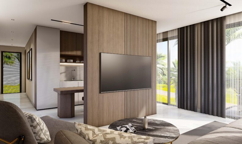 На территории комплекса будет инфраструктура уровня пятизвездочного отеля: три потрясающих песчаных бассейна, кинотеатр под открытым небом, зоны барбекю, зоны для медитаций, ресторан, детская игровая площадка, теннисный корт. В проекте будет ультрасовременный тренажерный зал, спа центр и сауна. Комплекс удобно расположен всего в двух минутах езды от рынка, в получасе от центра Кирении, в 55 минутах от аэропорта Эрджана и в пяти минутах от рынков, аптек и ресторанов. Всего в 10 окрестностях находится международный гольф-клуб профессионального уровня.