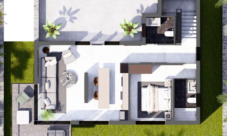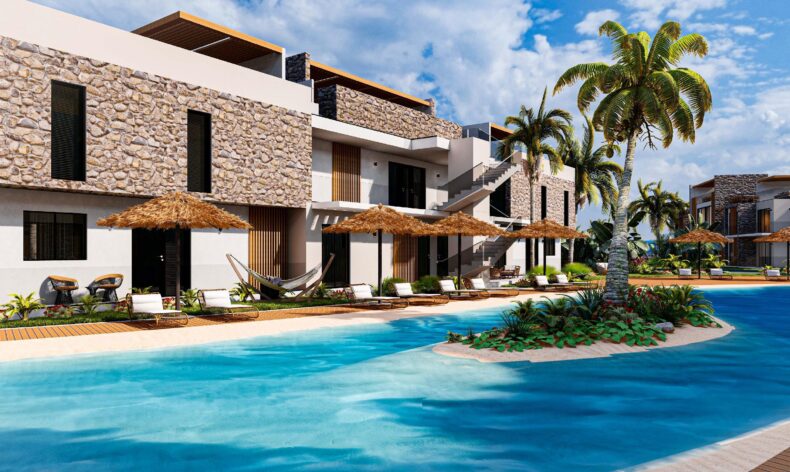Проект расположен на обширной территории площадью 26 260 кв.м. и будет состоять из апартаментов 1+1 и 2+1, студий- бунгало и шикарных вилл. Каждое жилое пространство оформлено с использованием роскошных дизайнерских элементов в едином африканском стиле.