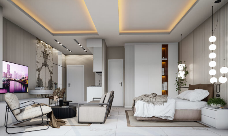 Данный комплекс расположен высоко в горах, откуда открывается невероятный вид на средиземное море и захватывающую дух горную цепь Бешпармак. В комплексе имеются апартаменты: студии и 1+1 лофт с собственной террасой на крыше. Большие окна обеспечивают много естественного света и потрясающий вид на окружающую природу. Все квартиры сдаются с внутренней отделкой, встроенным кухонным гарнитуром и готовым санузлом.
