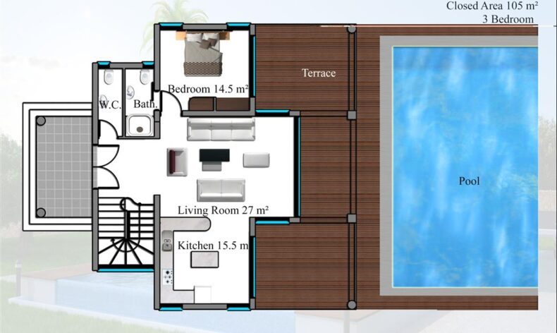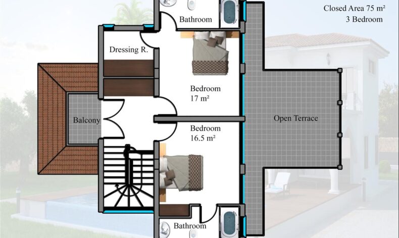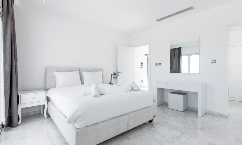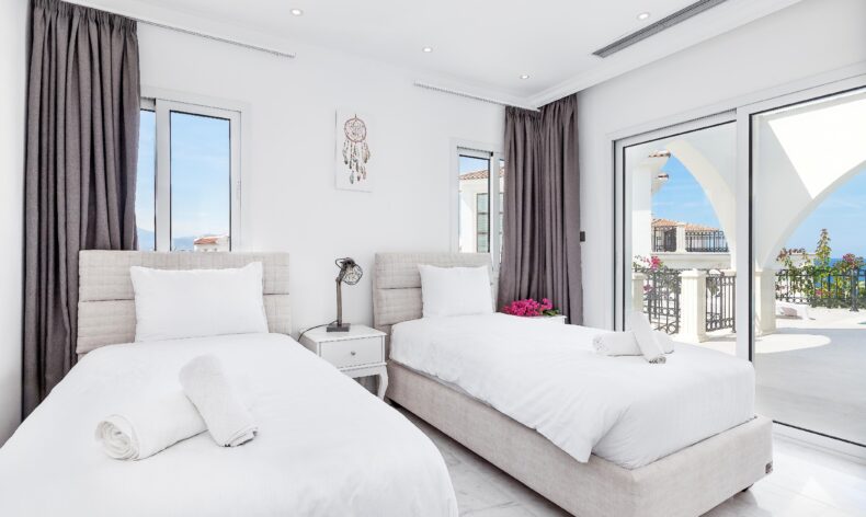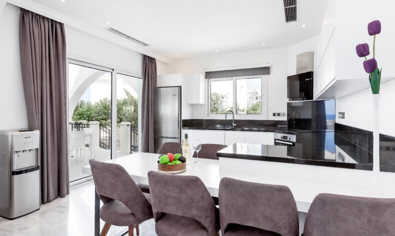 В проекте с современным дизайном представлены виллы с тремя, четырьмя и пятью спальнями, а также апартаменты с одной, двумя и тремя спальнями и пентхаусы с просторными террасами. Квартиры полностью готовы к заселению. Встроенная кухня и шкафы в спальнях, качественная сантехника, керамическая плитка на полу, звуко и теплоизоляция и двойные стеклопакеты.