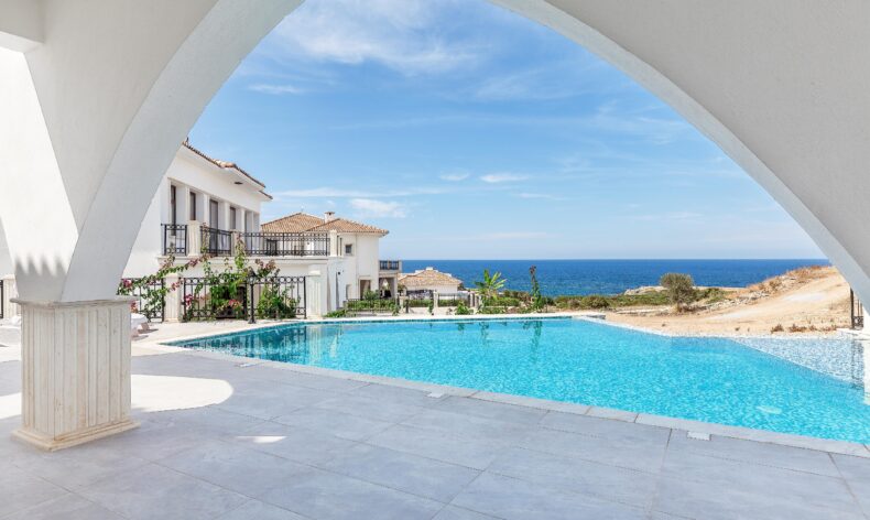 Шикарный жилой комплекс средиземноморской архитектуры с великолепным видом на море и горы, расположенный на первой линии моря в поселке Эсентепе, рядом с главной дорогой Северного Кипра. Всего несколько минут от комплекса до гольф-клуба Country Korineum с 18-луночным полем международного стандарта, и нескольких популярных пляжей. Несколько минут езды до самого большого на острове пятизвездочного отеля с лучшим на Северном Кипре СПА-комплексом и аквапарком.