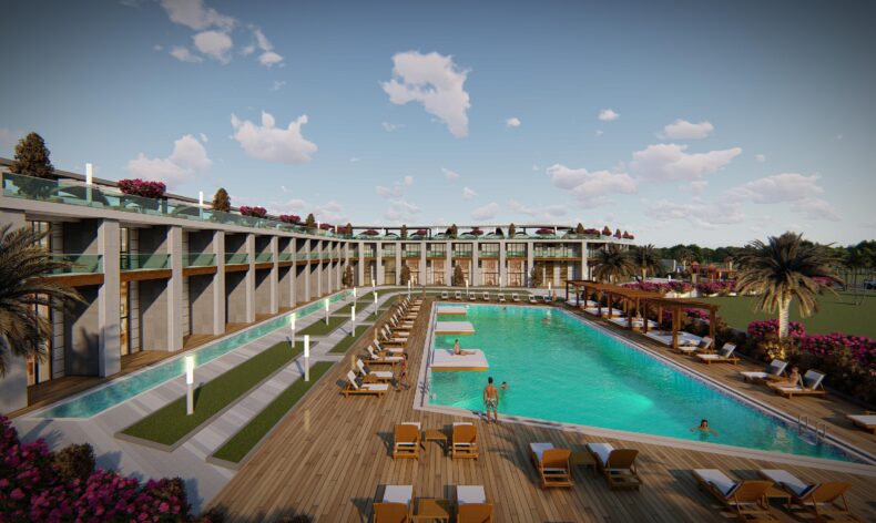 На территории комплекса есть все для комфортного проживания: прогулочные дорожки и зона отдыха, бассейн, детская площадка, тренажерный зал и кафе. Территория комплекса закрытая и оборудована камерами видеонаблюдения и вечерним освещением для зоны парковки. Пляж, магазины и остановки общественного транспорта находятся в пешей доступности, а центр города Гирне всего в 15 минутах езды. Проект включает в себя строительство гостиницы и казино, делая «Olivia Court» не только идеальным местом для жизни, но и привлекательным инвестиционным объектом.