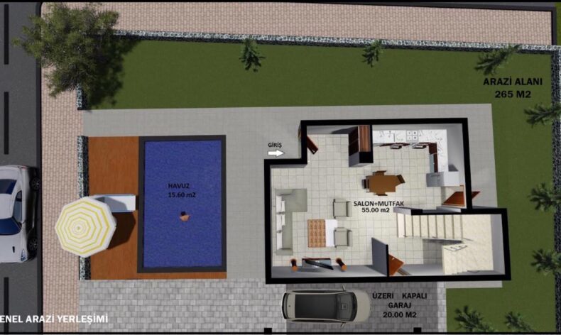 Жилой комплекс состоит всего из 6 вилл 3+1 общей площадью 265 м². Каждая вилла имеет собственную огороженную территорию с бассейном, террасой на крыше, садом и парковочным местом. В стоимость включена чистовая отделка, кухня, санузлы и встроенные шкафы. Виллы полностью готовы к заселению. При строительстве комплекса вилл используются только высококачественные натуральные материалы.